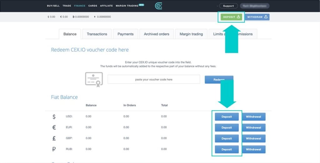 Si ya has depositado dinero en CEX.IO, puedes comprar utilizando este saldo. También puedes operar con el saldo de cualquier criptomoneda que tengas en tu billetera de intercambio.