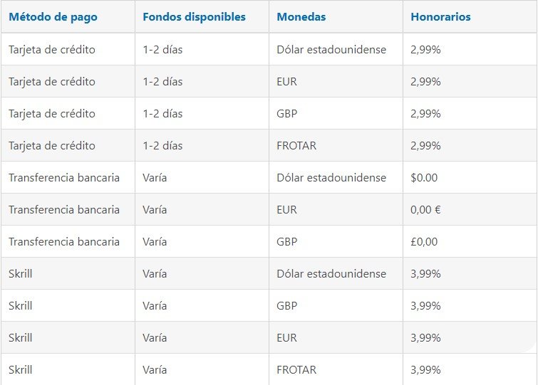 - GBP: hasta 3% + £5 en comisiones y tarifas.