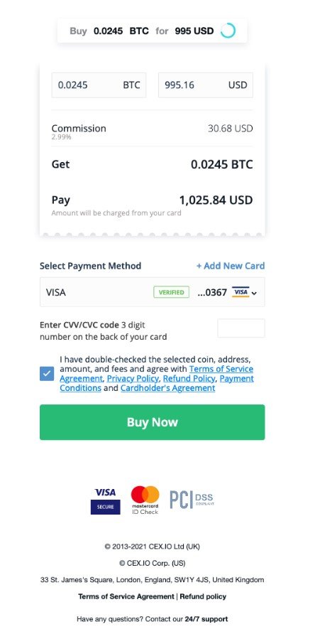 CEX.IO admite diversos métodos de depósito y retiro. Puedes comprar Bitcoin fácilmente con una tarjeta de crédito o débito.